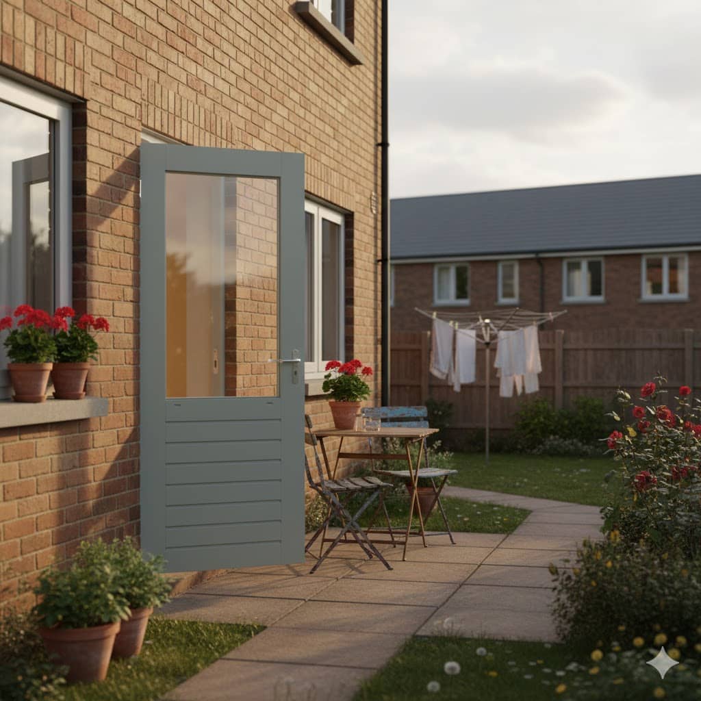 Om de draairichting van een buitendeur te bepalen ga je voor de deur staan zodat deze naar je toe draait.