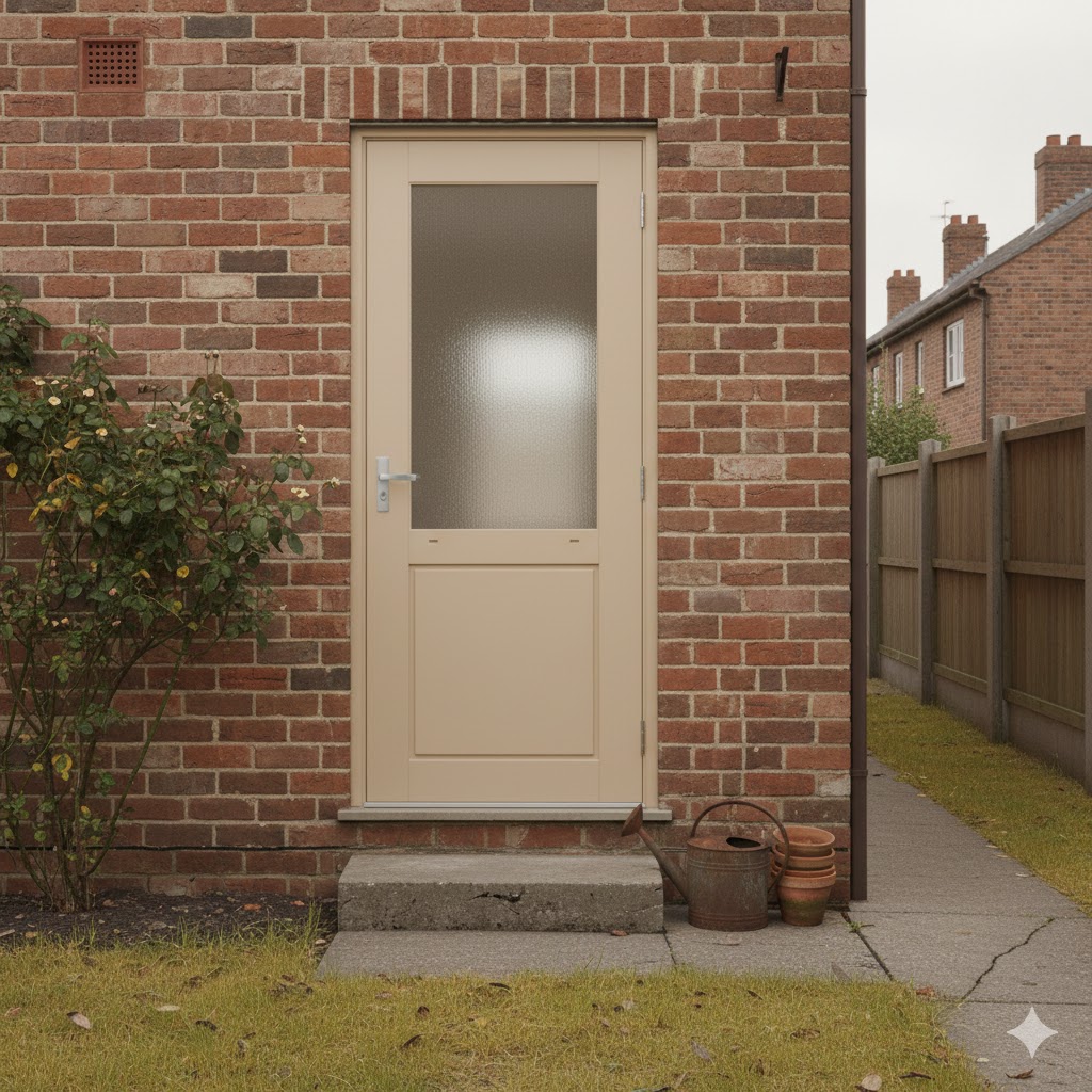 Deze hardhouten achterdeur heeft een zichtbare v-naadverbinding en ventilatiesleufjes. Leverbaar in alle afmetingen en standaard voorzien van een witte voorlak. Afwerking in iedere gewenste kleur is mogelijk, met keuze voor een aparte kleur aan de binnenzijde. Verkrijgbaar met diverse glassoorten.