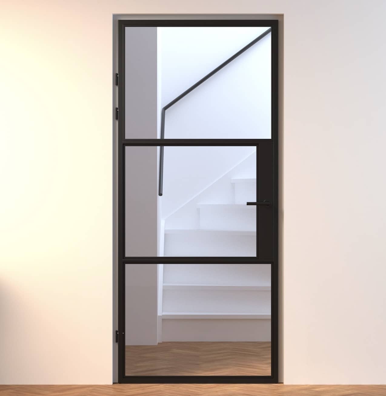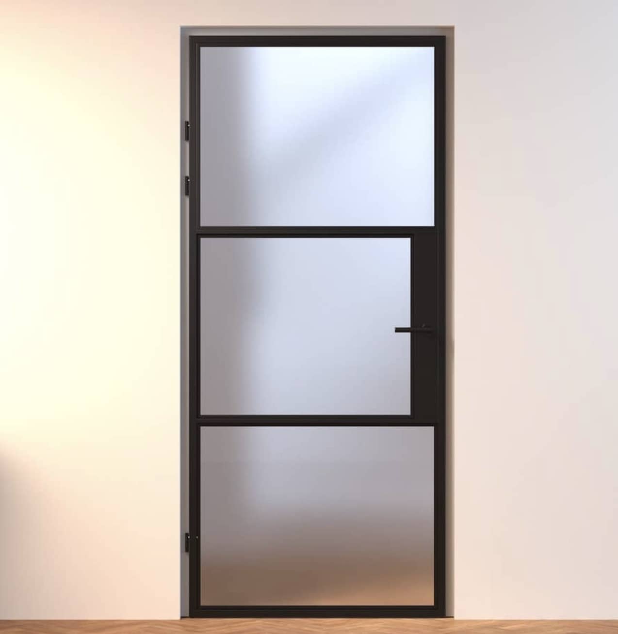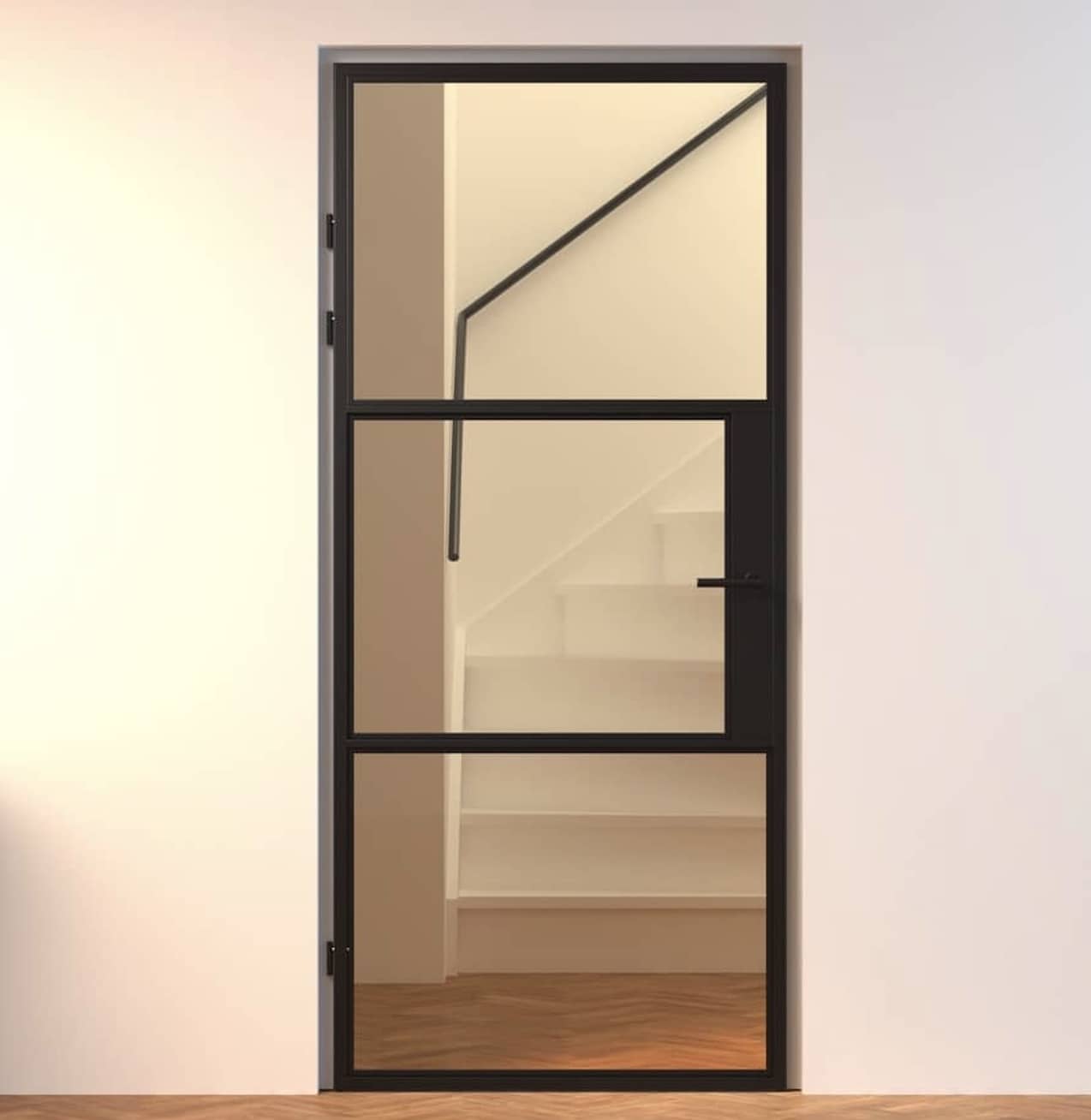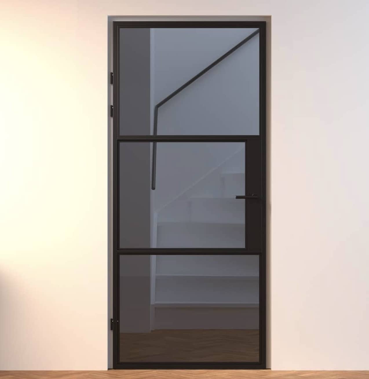 Deze aluminium binnendeur Maia in zwart is de perfecte keuze als vervanging van uw huidige deur en is ontworpen voor een eenvoudig montage. De deur heeft een strak en slank design dankzij de aluminium profielen en is voorzien van (gelaagd) veiligheidsglas, wat zorgt voor zowel een stijlvolle uitstraling als extra stevigheid en veiligheid. Het minimalistische ontwerp past moeiteloos in zowel moderne als luxe interieurs.