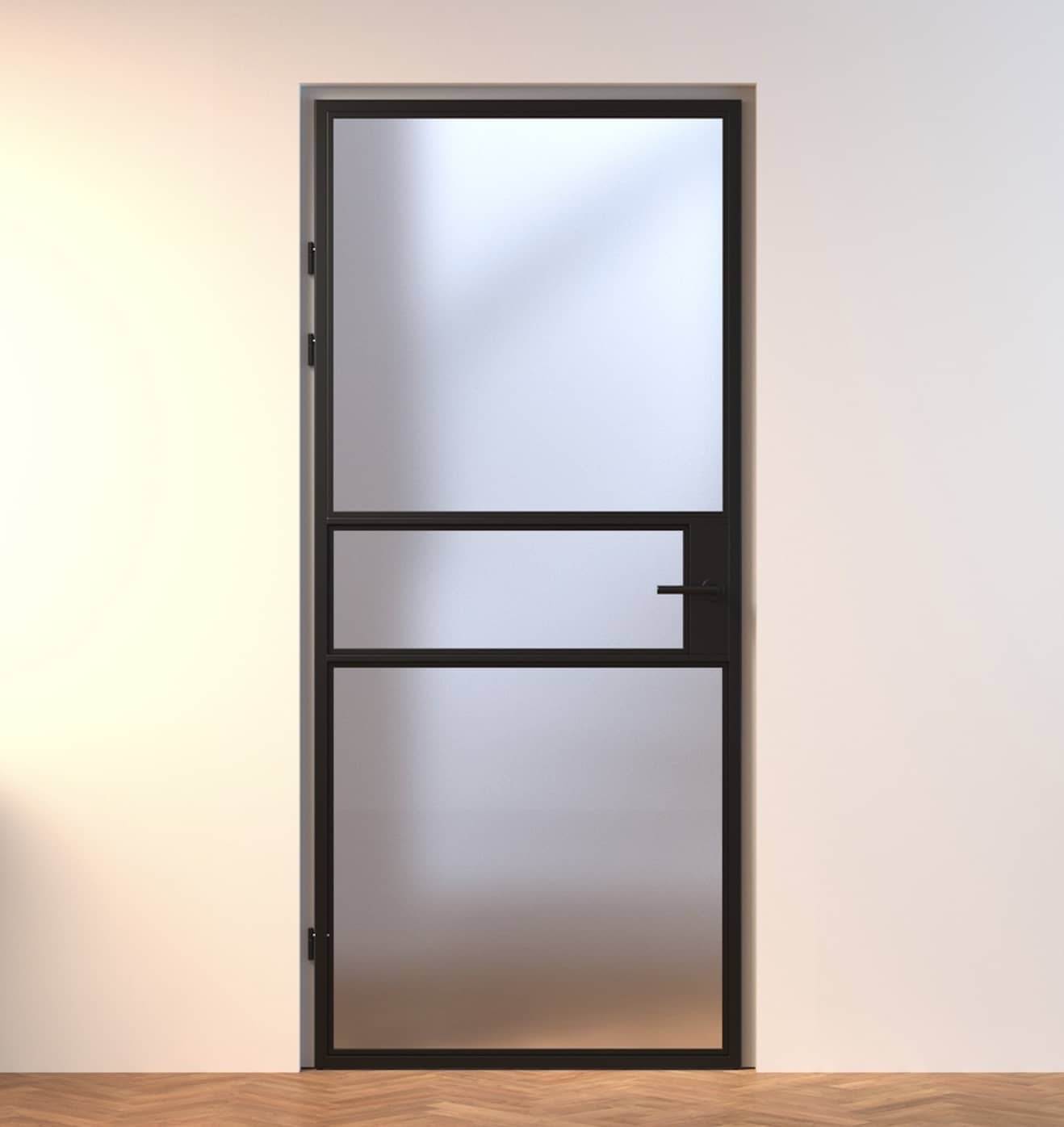 U heeft de mogelijkheid om de deur volledig aan te passen aan uw wensen. Kies uit verschillende kleuren, zoals zwart met een structuurafwerking of een warme bronstint, en selecteer het type glas dat het beste bij uw stijl past. Maatwerk is eventueel ook beschikbaar op aanvraag.