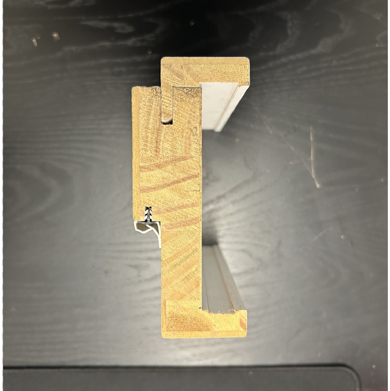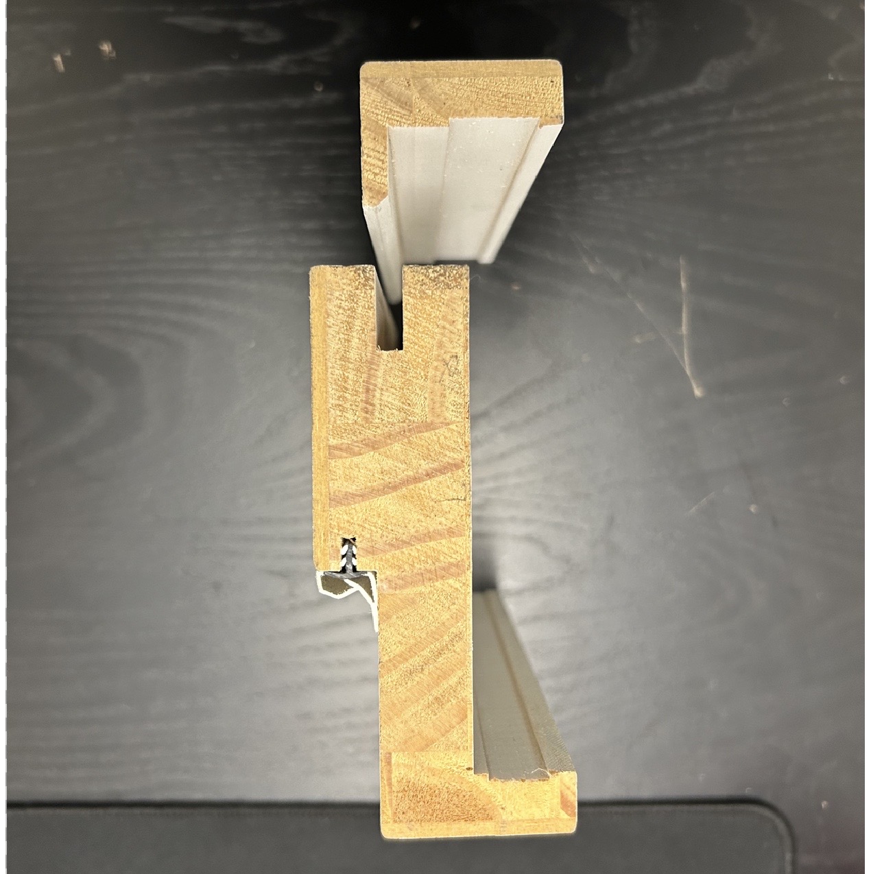 Uitvoering | Wandomvattend kozijn met smalle omlijsting van foutvrij verlijmd Grenen met ingelijmde MDF strips op de zichtzijdes voor gladdere verfafwerking |