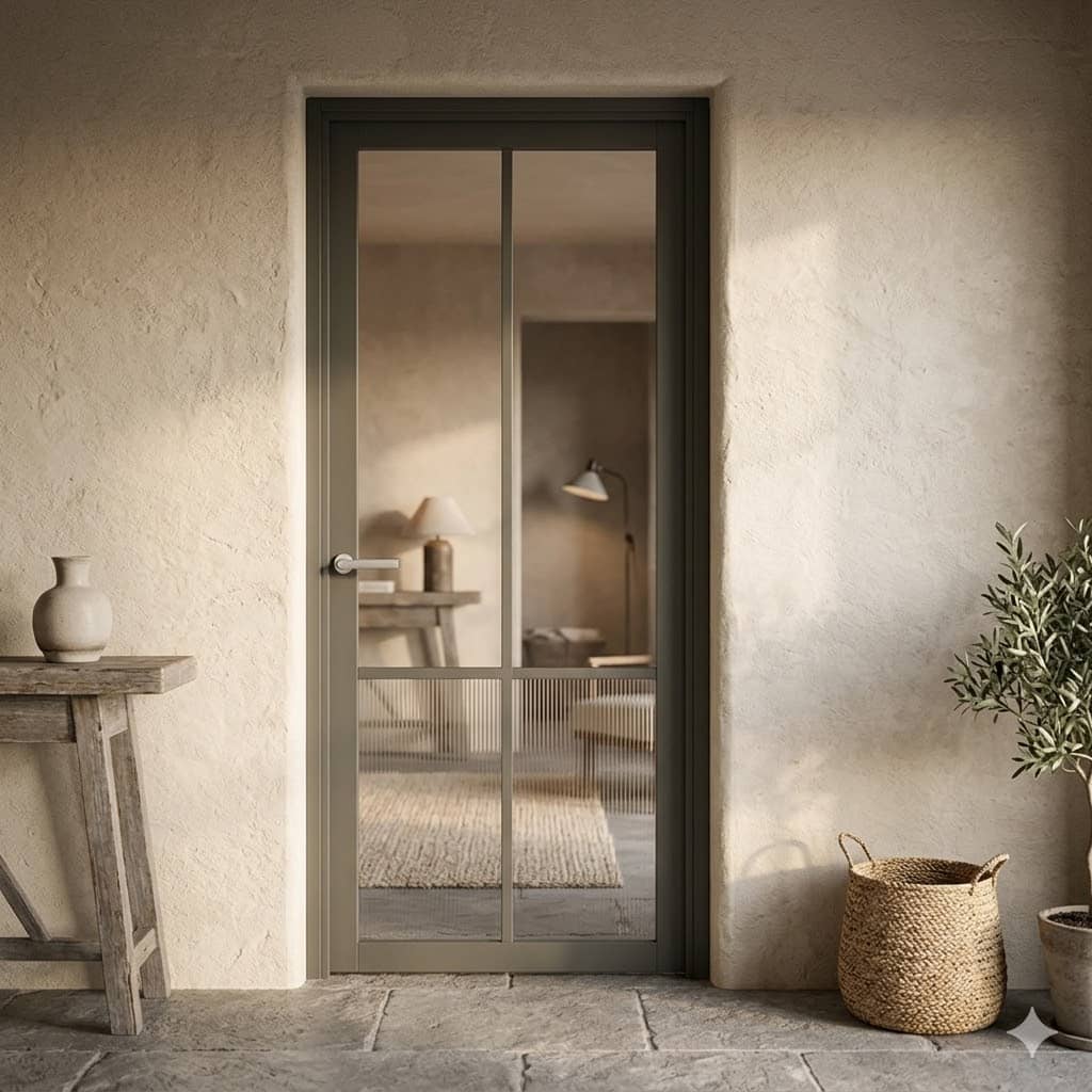 De Nero Legno Brescia in Olijf Grijs is een moderne binnendeur die industrieel design combineert met een warme, natuurlijke tint. Deze unieke kleur biedt een zacht en stijlvol alternatief voor standaard zwart of grijs.