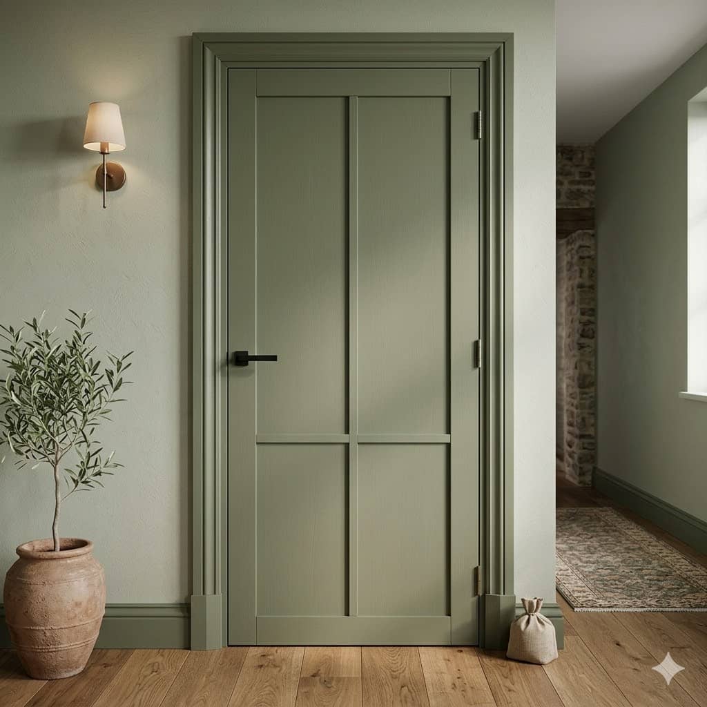 De Nero Legno Elba in Olijf Grijs is een stijlvolle binnendeur die de populaire industriële look combineert met een zachte, natuurlijke tint. Deze groengrijze kleur biedt een warm en uniek alternatief voor standaard zwart, waardoor de deur direct sfeer toevoegt aan je interieur.