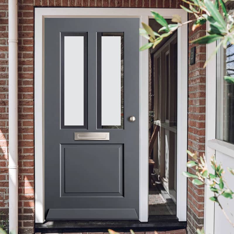 De Voordeur City Line Rijnsburg is een elegante, tijdloze deur met twee verticale ruiten, gemaakt van massief Merbau hardhout. Dit hardhout biedt uitstekende stabiliteit, hardheid en duurzaamheid, en de deur wordt geleverd met 6 jaar garantie.