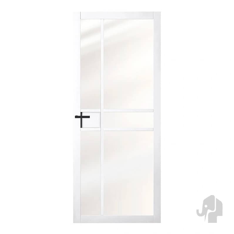 Met een dikte van 39 mm is de deur voorzien van een slotgat voor een smal magneetslot, het enige type slot dat geschikt is voor deze deuren. Het 6 mm dikke veiligheidsglas wordt tijdens de productie zonder glaslatten geplaatst, waardoor beide zijden een strak en identiek design hebben. Bij stompe deuren is de draairichting niet van belang.