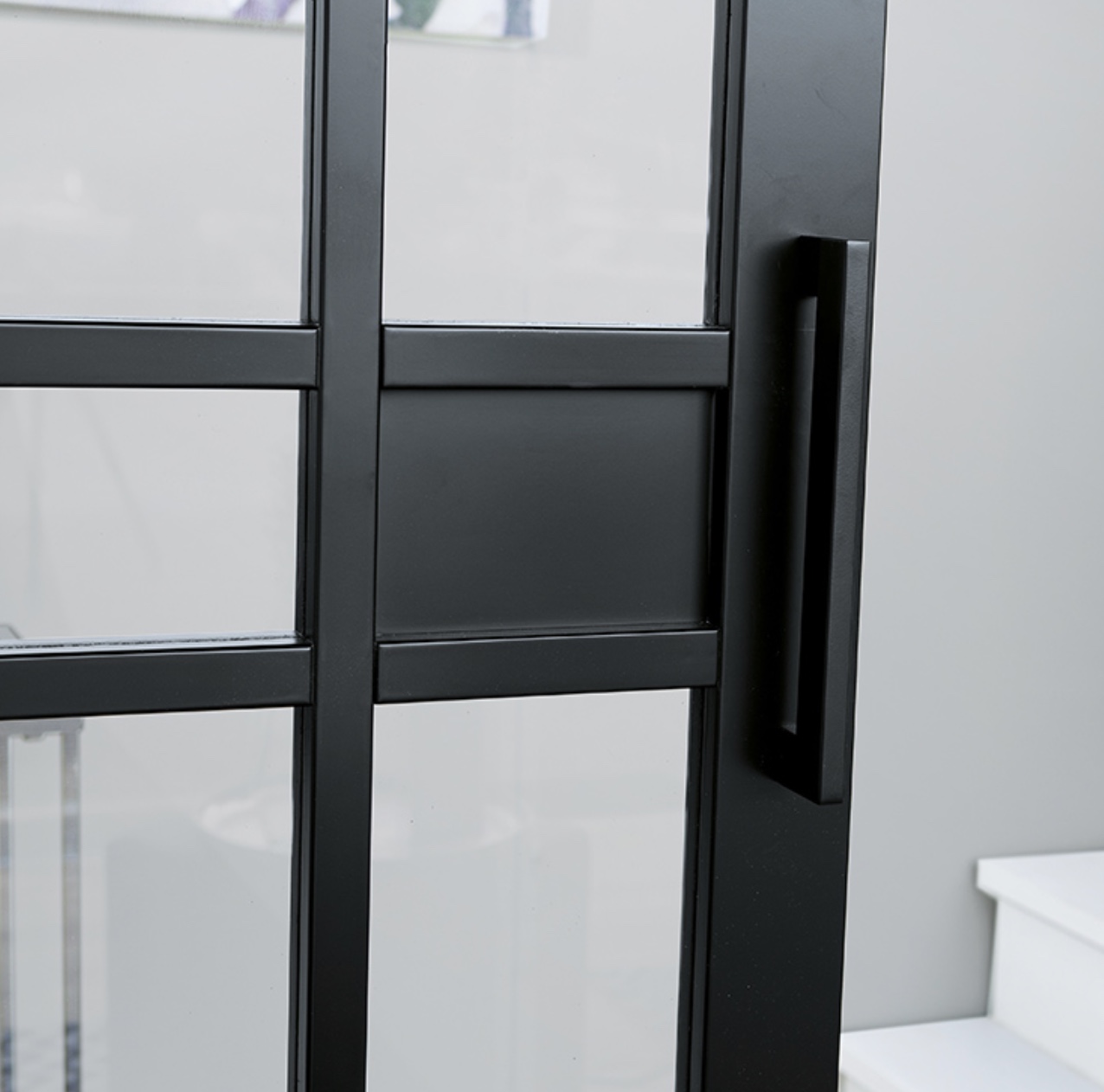 De Maatwerk Nero Legno Imola industriële binnendeur heeft strakke profielen en smalle roeden, gecombineerd met helder/mat veiligheidsglas. Dit geeft de deur een trendy, industriële uitstraling die kenmerkend is voor de Nero Legno-collectie. De deurstijlen zijn 80 mm breed en de roeden 30 mm, zwart (RAL9005) of wit (RAL9010) grondverf.