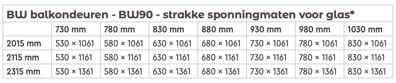 - Exclusief glas: Dient bij een glashandelaar besteld te worden.