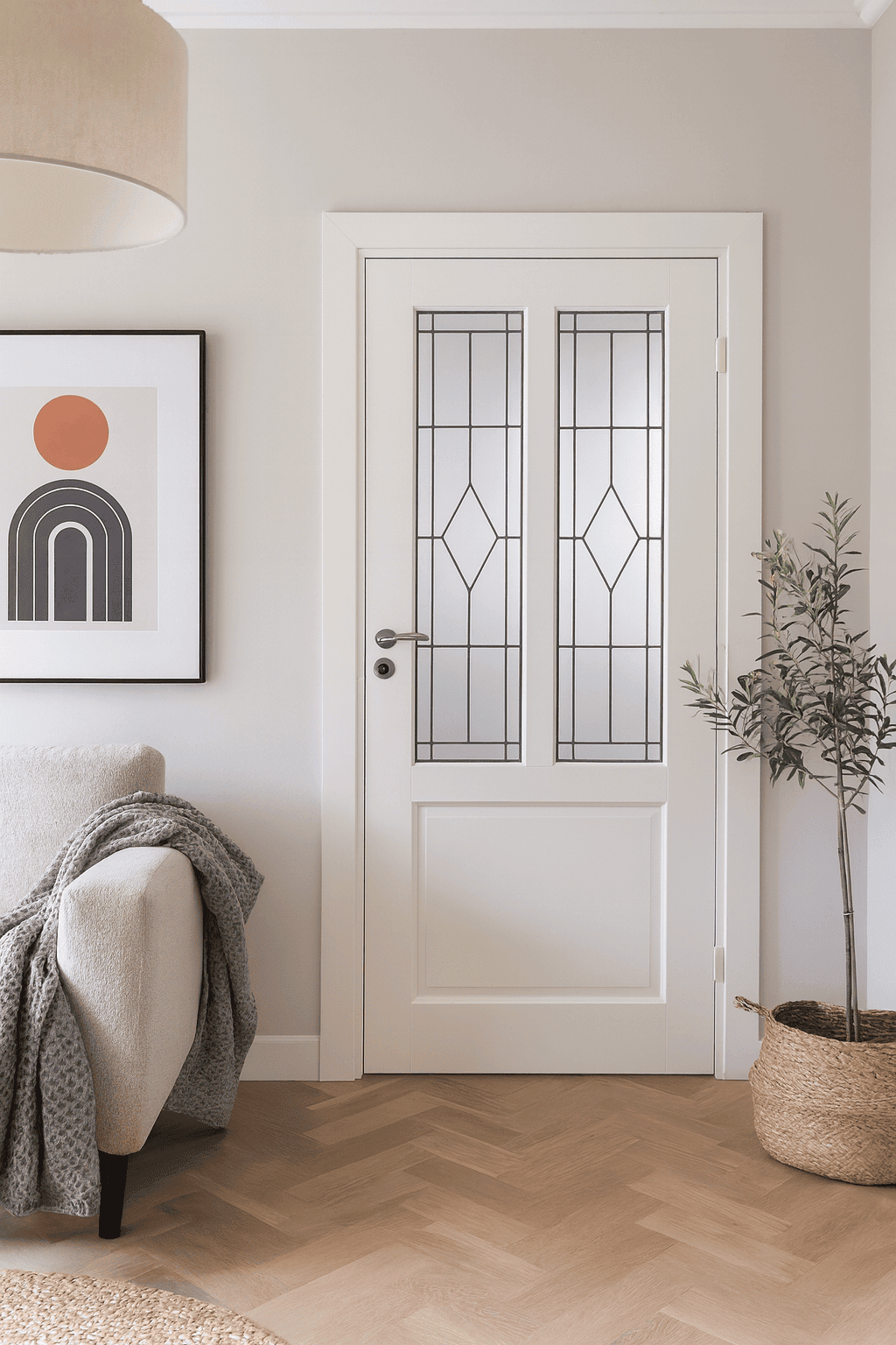 De Skantrae SKS 1240 is een massieve binnendeur uit de Accent collectie, voorzien van glas in lood 12 en stijlvolle facetprofielen. Perfect voor een tijdloos, klassiek interieur.