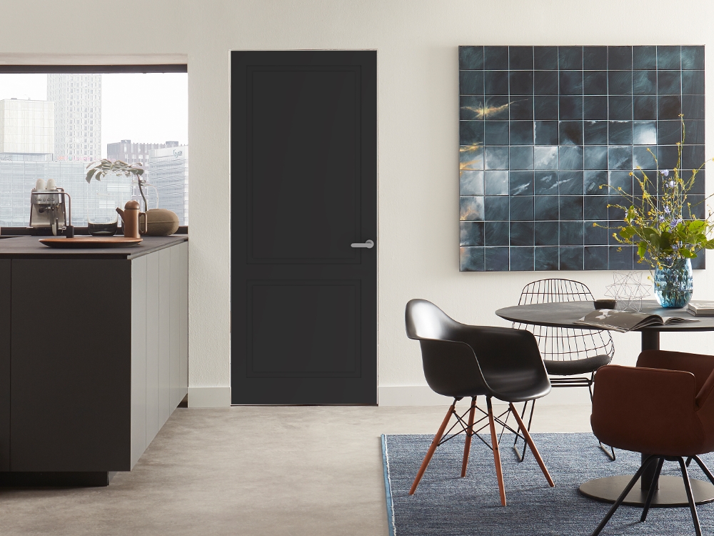 Deze deur is volledig afgelakt in Deep Black (RAL9011 PU TopCoat) en onderdeel van de Skantrae Matching Series.