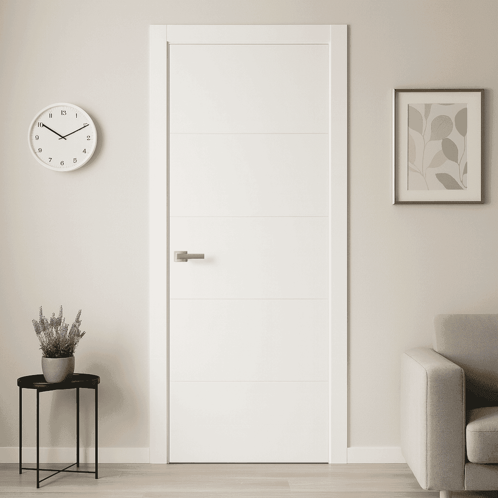 De deuren uit de Skantrae Nano TopCoat collectie zijn strak vormgegeven, duurzaam afgewerkt en direct klaar voor montage. Dankzij het geavanceerde EBC-lakproces zijn deze deuren krasvast, makkelijk schoon te maken en voorzien van een sterke laklaag in RAL 9010 (zuiver wit) die jarenlang meegaat.