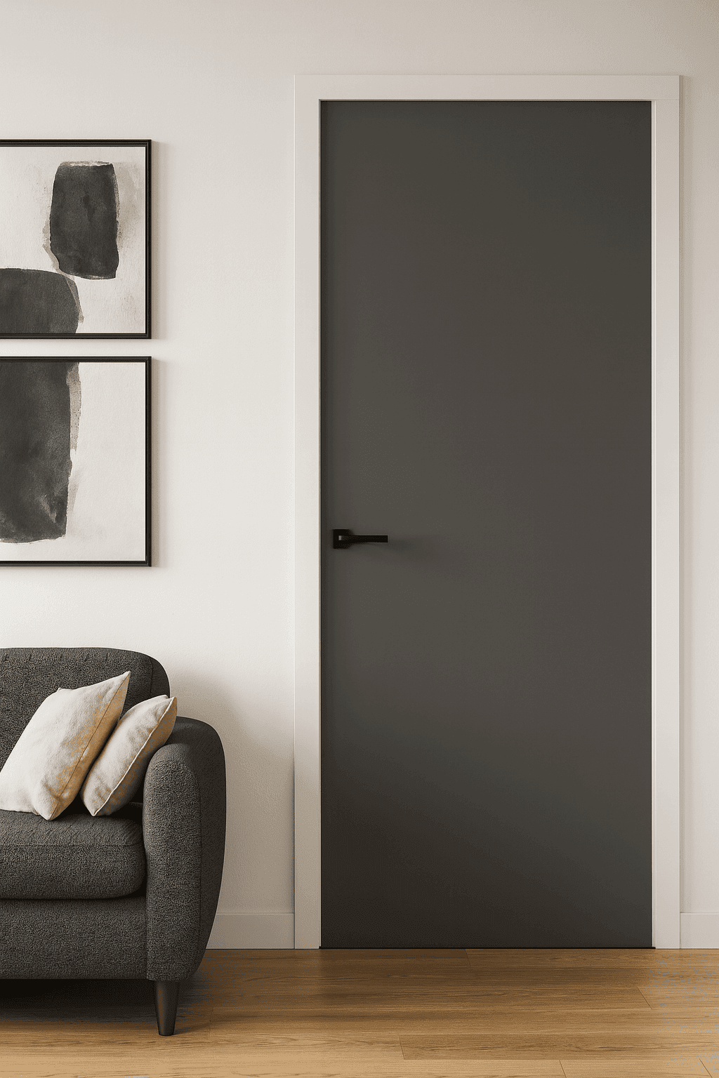 De deuren uit de Skantrae Nano TopCoat collectie zijn strak vormgegeven, duurzaam afgewerkt en direct klaar voor montage. Dankzij het geavanceerde EBC-lakproces zijn deze deuren krasvast, makkelijk schoon te maken en voorzien van een sterke laklaag in RAL 7043 mat grijs.