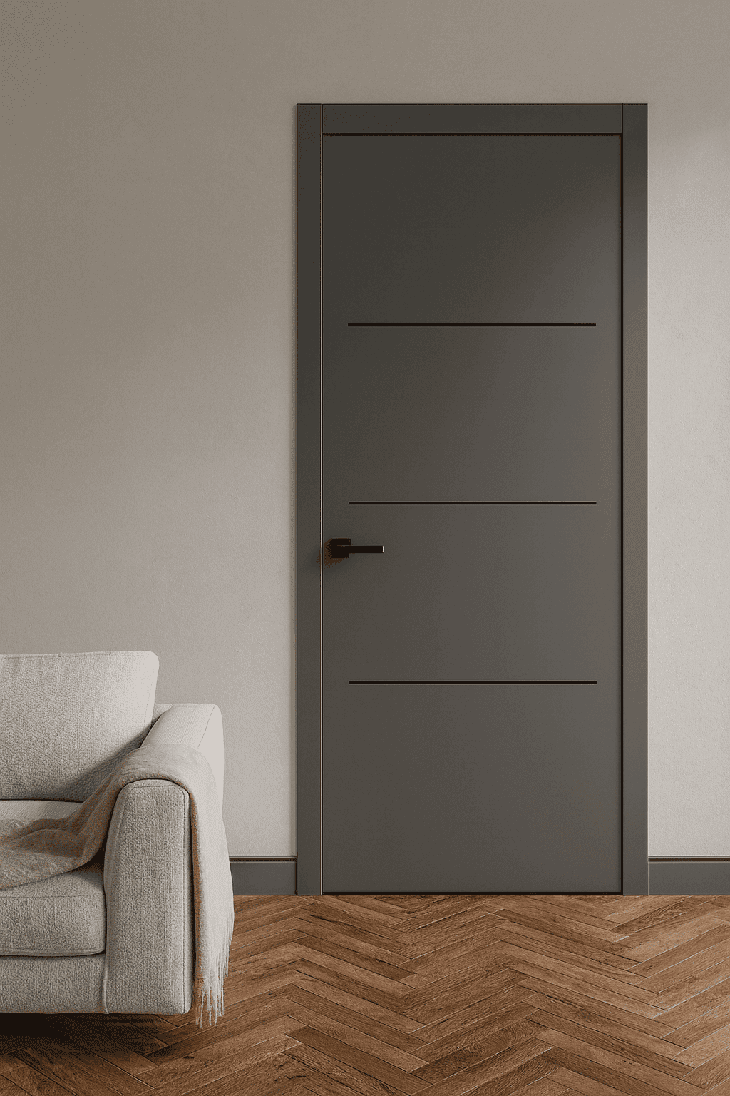 De deuren uit de Skantrae Nano TopCoat collectie zijn strak vormgegeven, duurzaam afgewerkt en direct klaar voor montage. Dankzij het geavanceerde EBC-lakproces zijn deze deuren krasvast, makkelijk schoon te maken en voorzien van een sterke laklaag in RAL 7043 mat grijs.