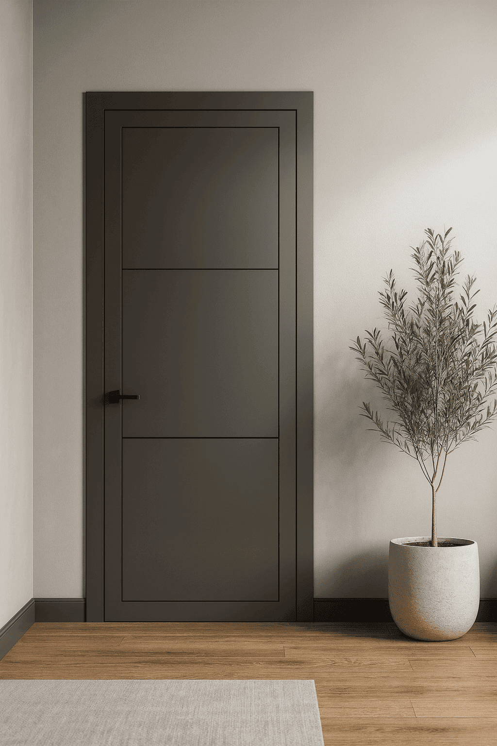 De deuren uit de Skantrae Nano TopCoat collectie zijn strak vormgegeven, duurzaam afgewerkt en direct klaar voor montage. Dankzij het geavanceerde EBC-lakproces zijn deze deuren krasvast, makkelijk schoon te maken en voorzien van een sterke laklaag in RAL 7043 mat grijs.