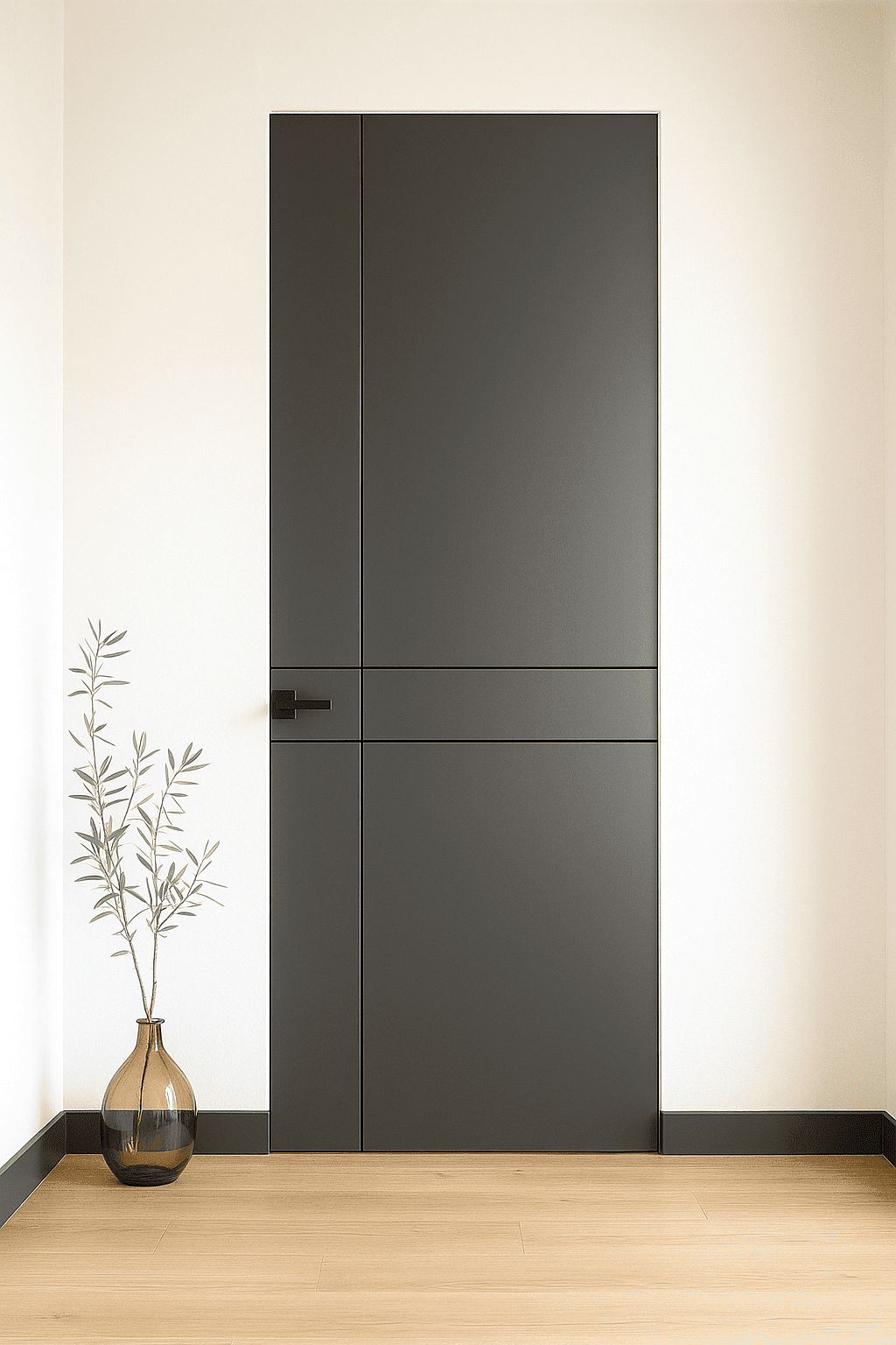 De deuren uit de Skantrae Nano TopCoat collectie zijn strak vormgegeven, duurzaam afgewerkt en direct klaar voor montage. Dankzij het geavanceerde EBC-lakproces zijn deze deuren krasvast, makkelijk schoon te maken en voorzien van een sterke laklaag in RAL 9005 zwart.