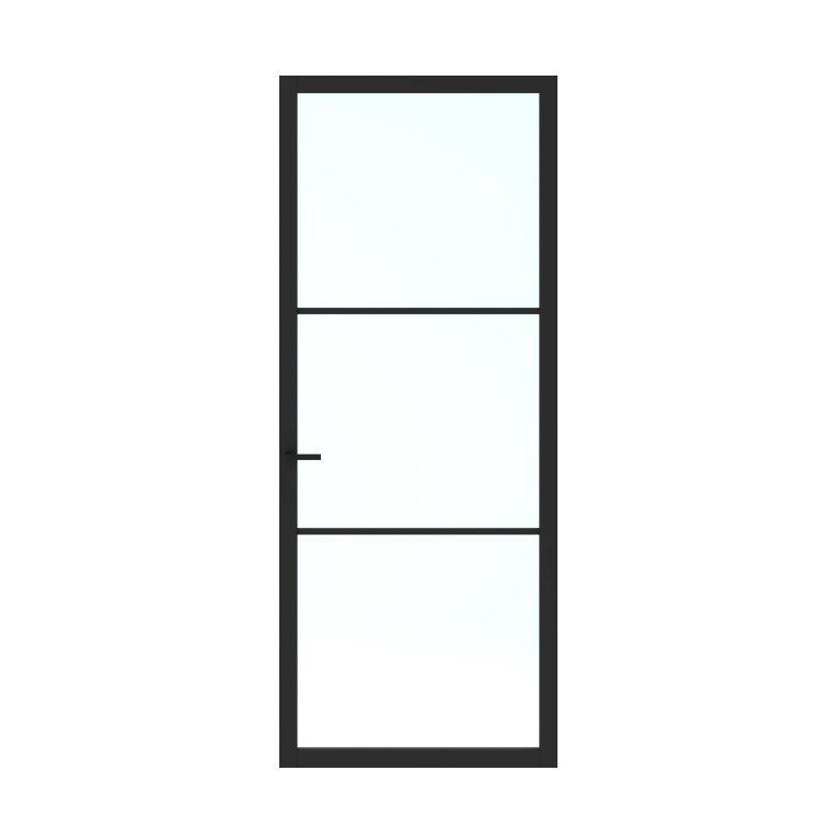 De deur is opgebouwd uit houten stijlen en dorpels en volledig afgelakt in diep zwart (RAL9011 PU TopCoat). De stompe variant wordt geleverd zonder scharnierinkrozingen, de opdekdeur is voorzien van paumelleboringen op standaardhoogte.