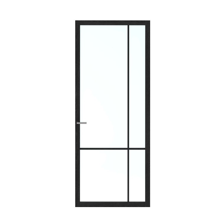 De deur is opgebouwd uit houten stijlen en dorpels en volledig Charcoal Oak: afgelakt in PU TopCoat Ral 9011. De stompe variant wordt geleverd zonder scharnierinkrozingen, de opdekdeur is voorzien van paumelleboringen op standaardhoogte.