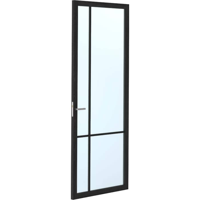 De deur is opgebouwd uit houten stijlen en dorpels en volledig Charcoal Oak: afgelakt in PU TopCoat Ral 9011. De stompe variant wordt geleverd zonder scharnierinkrozingen, de opdekdeur is voorzien van paumelleboringen op standaardhoogte.