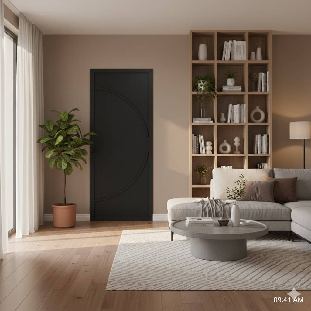 De deur is voorzien van een strak vlak paneel (12 mm) en haakse profielen voor een minimalistische uitstraling. Dankzij de slanke deurstijlen (60 mm bij stomp, 73 mm bij opdek) sluit deze perfect aan bij moderne meubels en verlichting. En met een dikte van 39 mm voelt de deur stevig en degelijk aan.