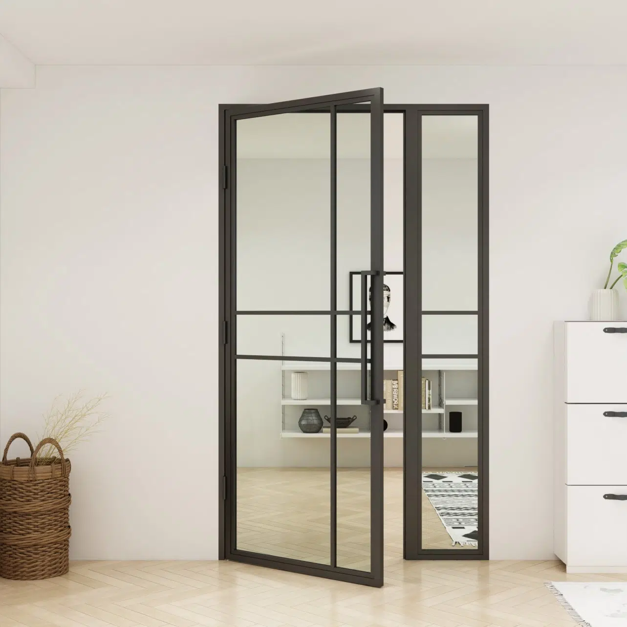 Stalen scharnierdeuren met paneel zijn bij Binnendeuren.shop volledig op maat te bestellen in een model naar keuze. De deur wordt compleet geleverd, inclusief kozijn, paneel, deurgreep en het benodigde montagemateriaal. Alle stalen binnendeuren met panelen zijn voorzien van gehard veiligheidsglas.