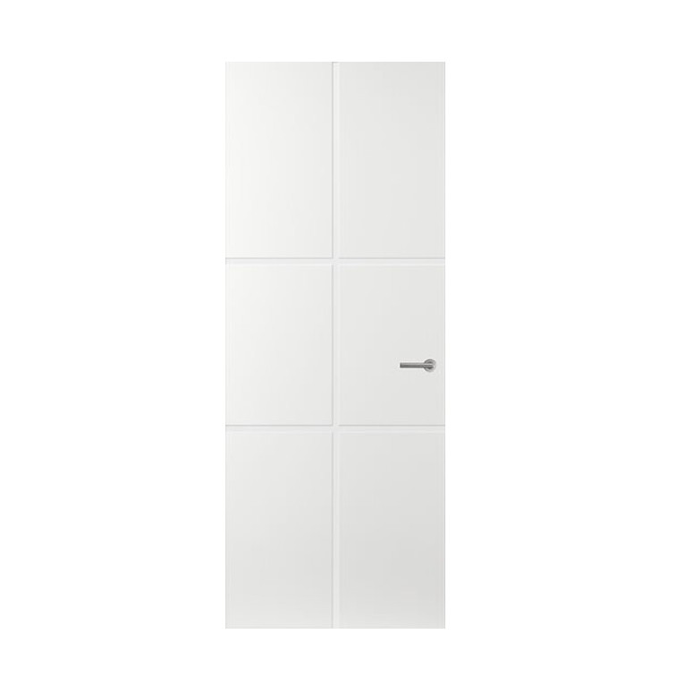 De Svedex FR561 wit is een moderne lijndeur uit de Front collectie, met een speels en asymmetrisch lijnenspel in 24 mm vlakke lijnfrezingen. Deze deur brengt karakter in elk strak interieur en is verkrijgbaar in Alpine wit (standaard) of Extra wit.