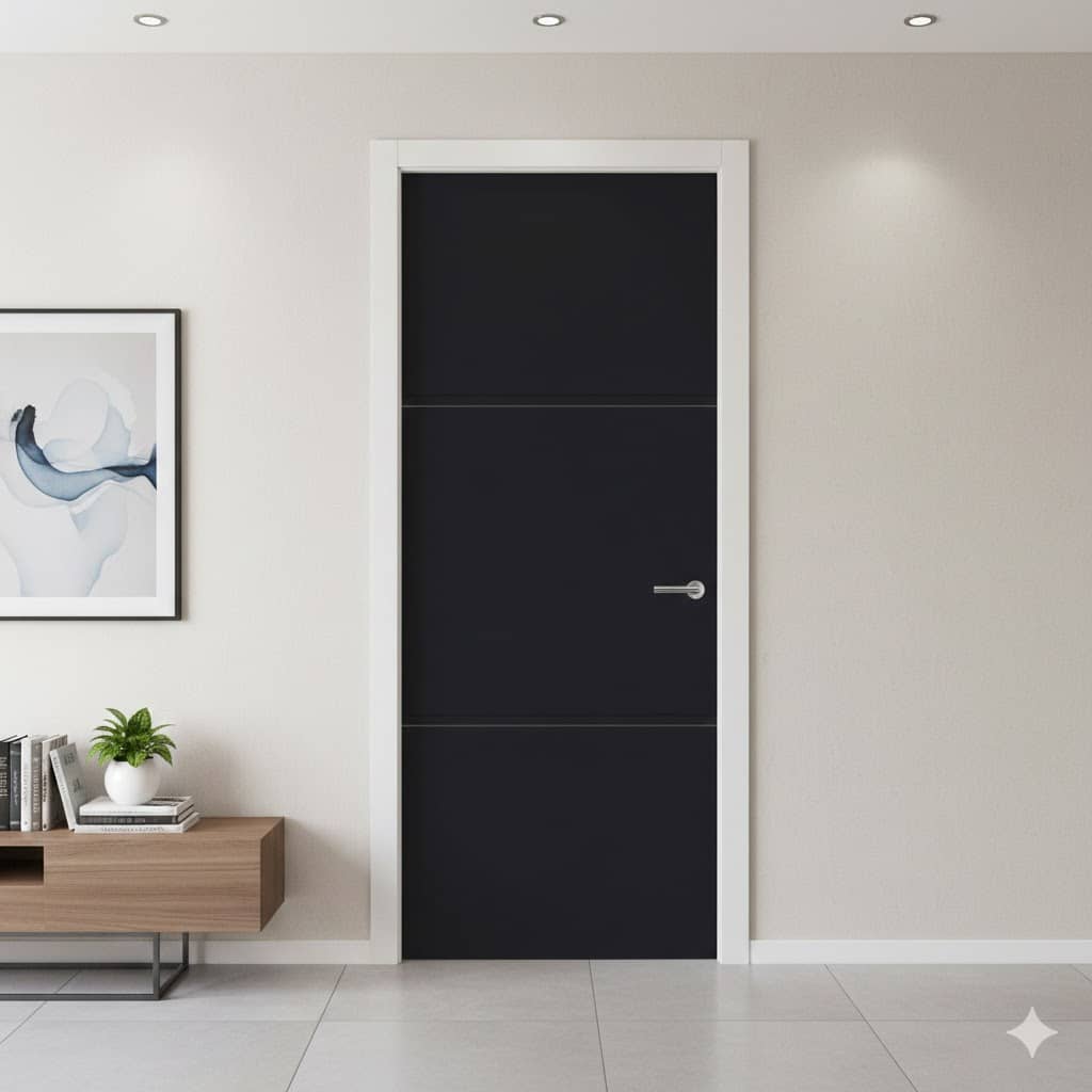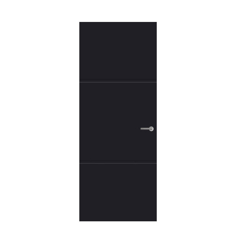De Svedex FR565 zwart is een strakke lijndeur uit de Front collectie, uitgevoerd in diep zwart (RAL9005) met een modern patroon van 24 mm vlakke lijnfrezingen. Deze deur geeft elk interieur een krachtige, minimalistische uitstraling.