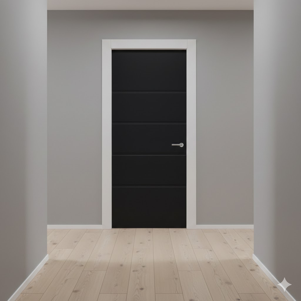 De Svedex FR566 zwart is een moderne lijndeur uit de Front collectie, uitgevoerd in stijlvol zwart (RAL9005) met een creatief en krachtig lijnenspel van 24 mm vlakke lijnfrezingen. Een echte blikvanger in een modern of industrieel interieur.