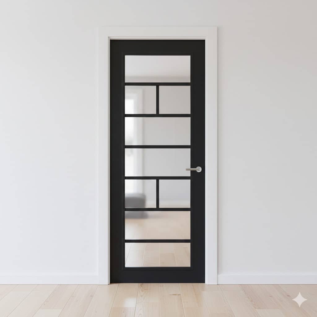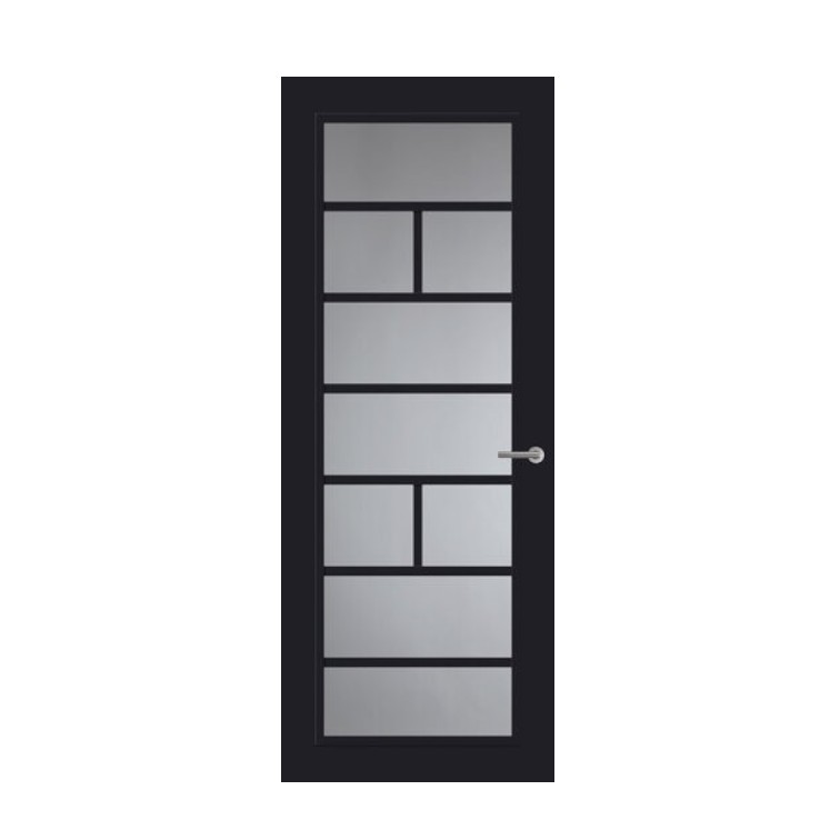 De Svedex FR505 zwart is een moderne glasdeur uit de Front collectie, uitgevoerd in diep zwart (RAL9005). De slanke glasverdeling geeft de deur een industriële en open uitstraling.