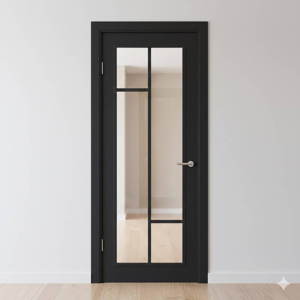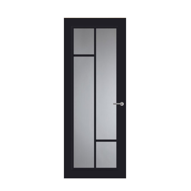 De Svedex FR508 zwart is een moderne glasdeur uit de Front collectie, uitgevoerd in diep zwart (RAL9005). De asymmetrische glasverdeling geeft de deur een unieke, industriële uitstraling met veel lichtinval.