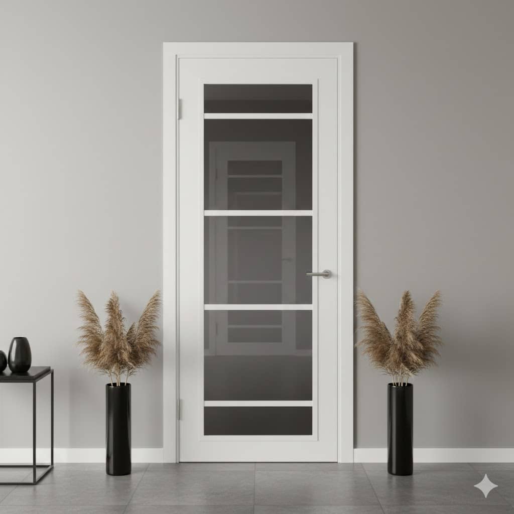 De Svedex FR517W is een moderne glasdeur uit de Front collectie, afgewerkt in strak Alpine wit of Extra wit. De deur is voorzien van stijlvolle glaslatten en past perfect in een modern of minimalistisch interieur. Dankzij de duurzame Svedex Superlak (EPC) is de deur krasvast, kleurvast en bestand tegen zonlicht.