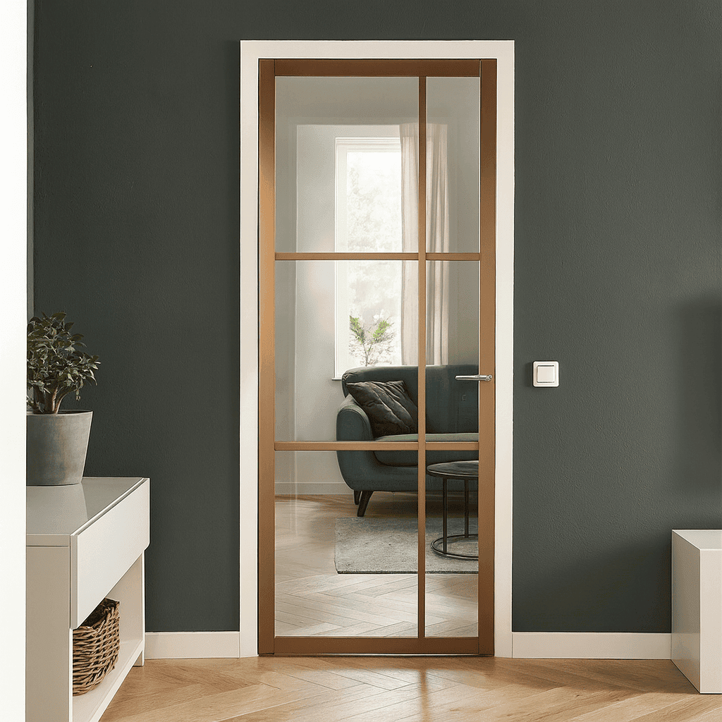 De Svedex Nova Design NDB906 brons is een industriële eyecatcher met een stijlvolle bronskleurige afwerking. Het glasvlak is verdeeld in een strak rooster van fijne roedes, wat zorgt voor een modern en karaktervol ontwerp. De deur wordt standaard geleverd met een loopslot en is beschikbaar met 4 soorten veiligheidsglas. Combineer met een Nova deurklink zoals Enter, Close of Air voor een harmonieus geheel.