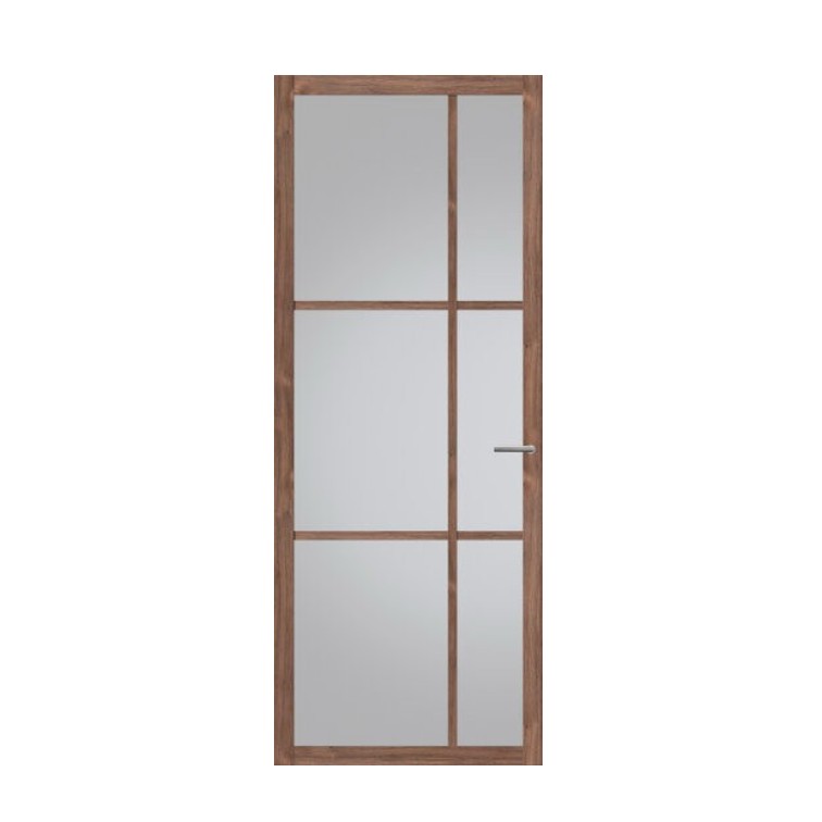 De Svedex Nova Design NDB906 donker eiken is een stoere en stijlvolle industriële deur met een luxe houtlook in donker eiken. Het glasvlak is verdeeld in een strak rooster van fijne roedes, wat zorgt voor een krachtig en modern karakter. De deur wordt standaard geleverd met een loopslot en is beschikbaar met 4 soorten veiligheidsglas. Voor een compleet geheel kiest u een Nova deurklink zoals Enter, Close of Air.