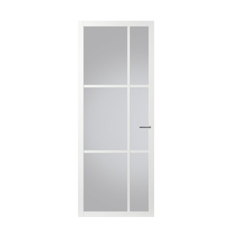 De Svedex Nova Design NDB906 wit is een elegante industriële deur, wit afgelakt (RAL9010 of RAL9016), met een glasvlak dat is verdeeld in een rooster van fijne roedes. Dit geeft de deur een strak en karaktervol uiterlijk. De deur wordt standaard geleverd met een loopslot en is beschikbaar met 4 soorten veiligheidsglas. Maak het geheel af met een Nova deurklink zoals Enter, Close of Air.