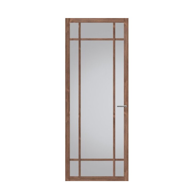 De Svedex Nova Design NDB907 donker eiken is een industriële design deur met een luxe houtlook in donker eiken en een glasvlak met een verticale roedeverdeling. Dit geeft de deur een strak en stijlvol karakter. De deur wordt standaard geleverd met een loopslot en is beschikbaar met 4 soorten veiligheidsglas. Combineer met een Nova deurklink zoals Enter, Close of Air voor een compleet geheel.