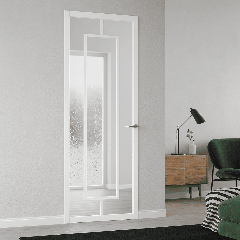 De Svedex Nova Design NDB908 wit is een moderne industriële deur, wit afgelakt (RAL9010 of RAL9016), met een speels glasvlak voorzien van een asymmetrische roedeverdeling. Dit zorgt voor een uniek en eigentijds design. De deur wordt standaard geleverd met een loopslot en is beschikbaar met 4 soorten veiligheidsglas. Combineer met een Nova deurklink zoals Enter, Close of Air voor een harmonieus geheel.