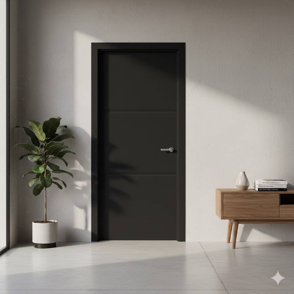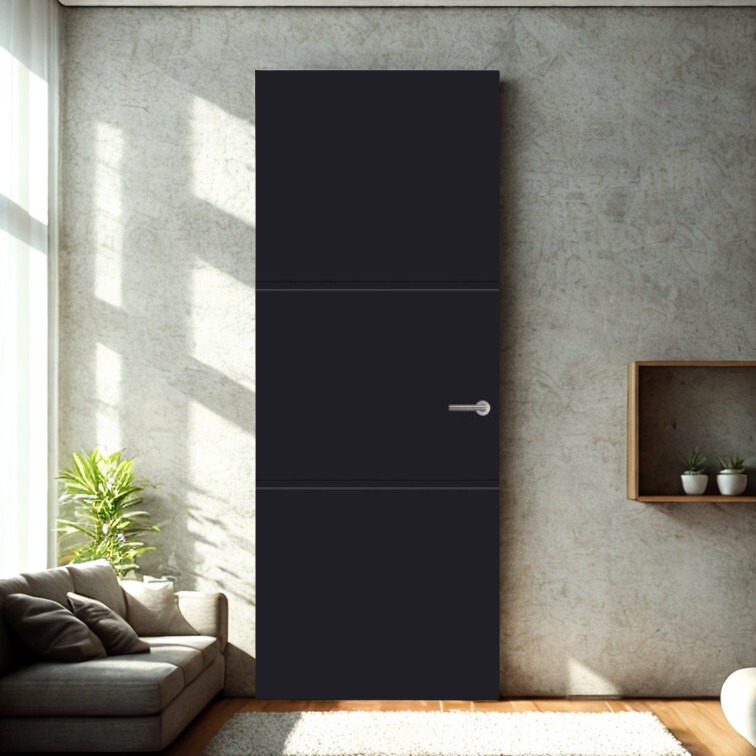 Dankzij de diepzwarte kleur en de afwerking in krasvaste superlak, straalt deze deur luxe en duurzaamheid uit – perfect voor moderne en industriële interieurs.