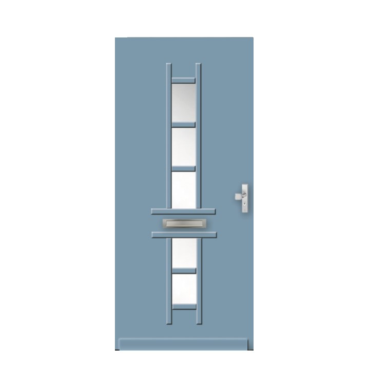De deur is opgebouwd uit 7 mm Medite Tricoya dekplaten met een polystyreen isolatiekern en afgewerkt met hardhouten kantlatten en een Stabitherm-stabilisator die kromtrekken voorkomt.