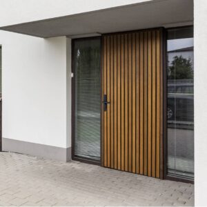 De City Line Stripes voordeuren zijn de meest trendy voordeuren in ons assortiment. De gevelbekleding voordeuren zijn vlak, zwart gelakt aan de binnenzijde en voorzien van thermisch gemodificeerde hardhouten latten aan de buitenzijde.