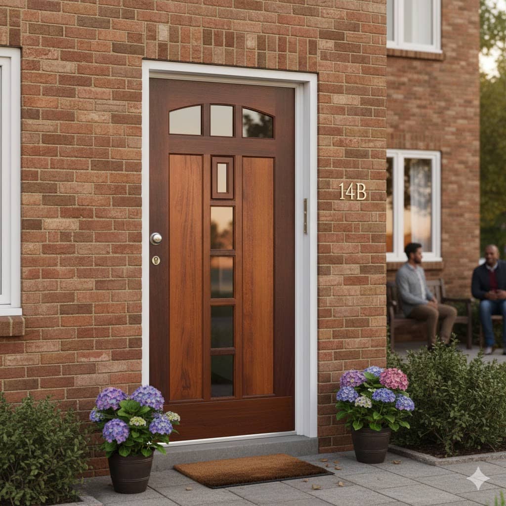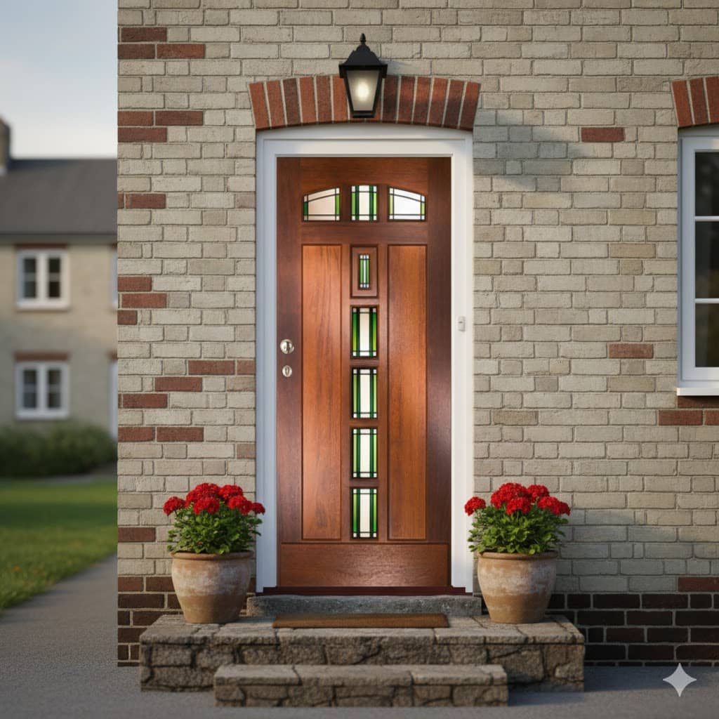 Hardhouten voordeur in authentieke jaren ’30 stijl, voorzien van klassiek glas-in-lood en een karakteristiek boderaampje een herkenbaar detail uit die periode. Standaard geleverd in witte voorlak en op wens volledig af te lakken in elke gewenste kleur, met de mogelijkheid om voor de binnenzijde een andere tint te kiezen. Geen brievensleuf mogelijk. Prijs inclusief glas-in-lood, exclusief beslag, slotgat en hang en sluitwerk.