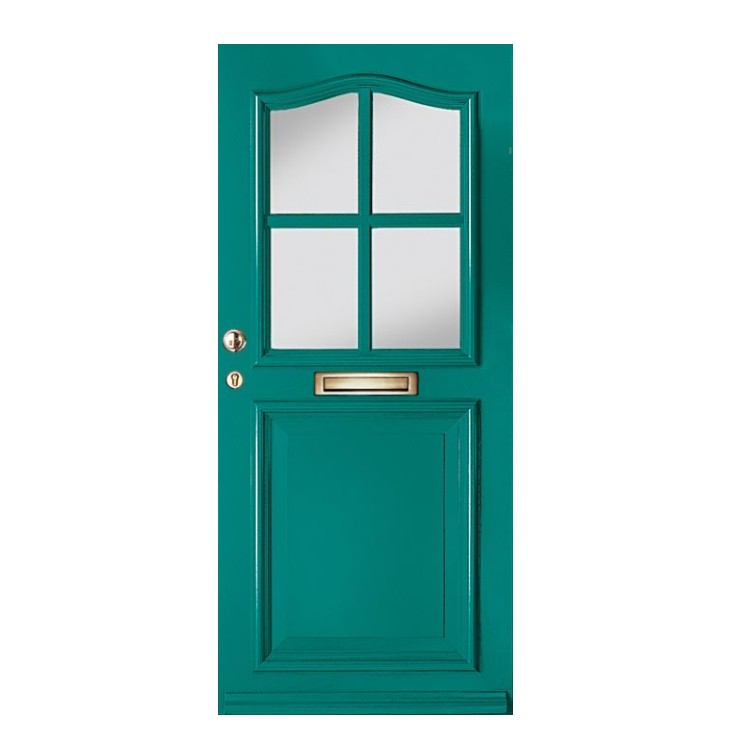 Deze klassieke hardhouten voordeur met kenmerkende Zaanse toog straalt karakter en ambacht uit. De deur wordt standaard geleverd in een witte voorlak, maar kan volledig in elke gewenste kleur worden afgelakt met eventueel een afwijkende tint aan de binnenzijde. De 4-ruitsverdeling geeft de deur extra uitstraling, en je kunt kiezen uit diverse glassoorten om het geheel af te maken. Glas, beslag, slotgatbewerking en hang en sluitwerk zijn niet inbegrepen in de prijs.