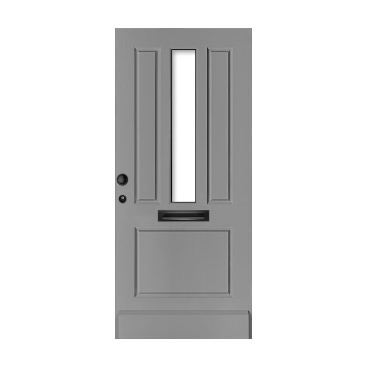 Tijdloze hardhouten voordeur met een stijlvolle uitstraling. Standaard uitgevoerd in witte voorlak en op wens volledig af te lakken in elke gewenste kleur, waarbij de binnenzijde eventueel in een andere tint kan worden gekozen. Verkrijgbaar met diverse glassoorten. Prijs exclusief glas, beslag, slotgat en hang en sluitwerk.
