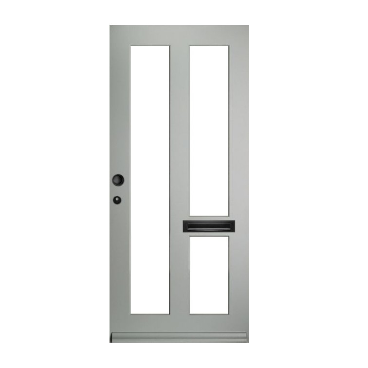 Tijdloze hardhouten voordeur, standaard geleverd met witte voorlak. Op wens volledig af te lakken in elke gewenste kleur, met de mogelijkheid om voor de binnenzijde een andere tint te kiezen. Verkrijgbaar met diverse glassoorten. Geen brievensleuf mogelijk. Prijs exclusief glas, beslag, slotgat en hang en sluitwerk.