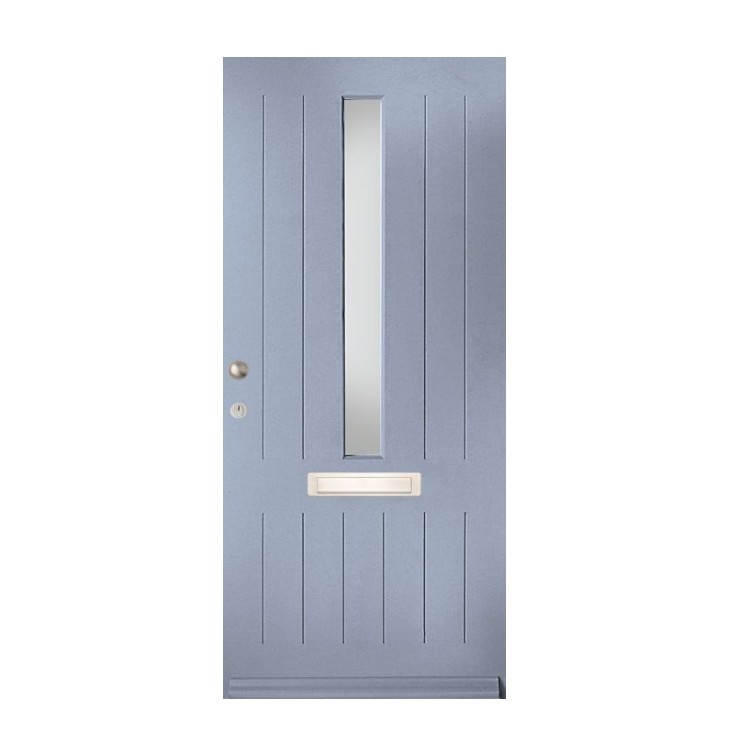 Tijdloze hardhouten voordeur met verticale groeven en een elegante ruit die zorgt voor een verfijnde uitstraling. Standaard geleverd in witte voorlak en op wens volledig af te lakken in elke gewenste kleur, waarbij de binnenzijde in een andere tint kan worden uitgevoerd. Verkrijgbaar met diverse glassoorten. Prijs exclusief glas, beslag, slotgat en hang en sluitwerk.