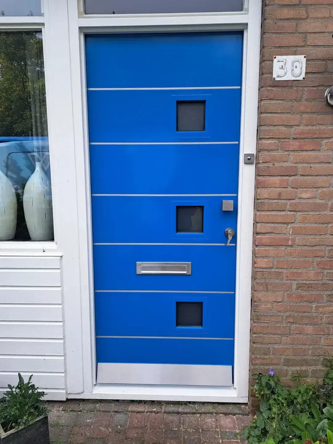 Om je nieuwe buitendeur veiliger te maken, kun je kiezen voor een meerpuntssluiting (driepuntsluiting). Dit systeem vergrendelt de deur op drie punten in het kozijn en is beschikbaar in twee varianten: