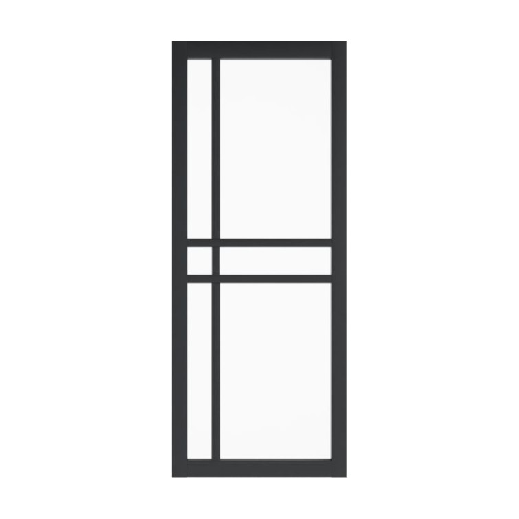 Deze minimalistische binnendeur heeft een strak design met een authentieke industriële look. Het vlakliggende paneel en de 50 mm stijlbreedte maken hem ideaal als schuifdeur zonder slot. Gemaakt van hout met een realistische steel look, standaard zwart gegrond en in elke kleur af te lakken. Inclusief voorgemonteerd veiligheidsglas, exclusief beslag en hang- en sluitwerk.