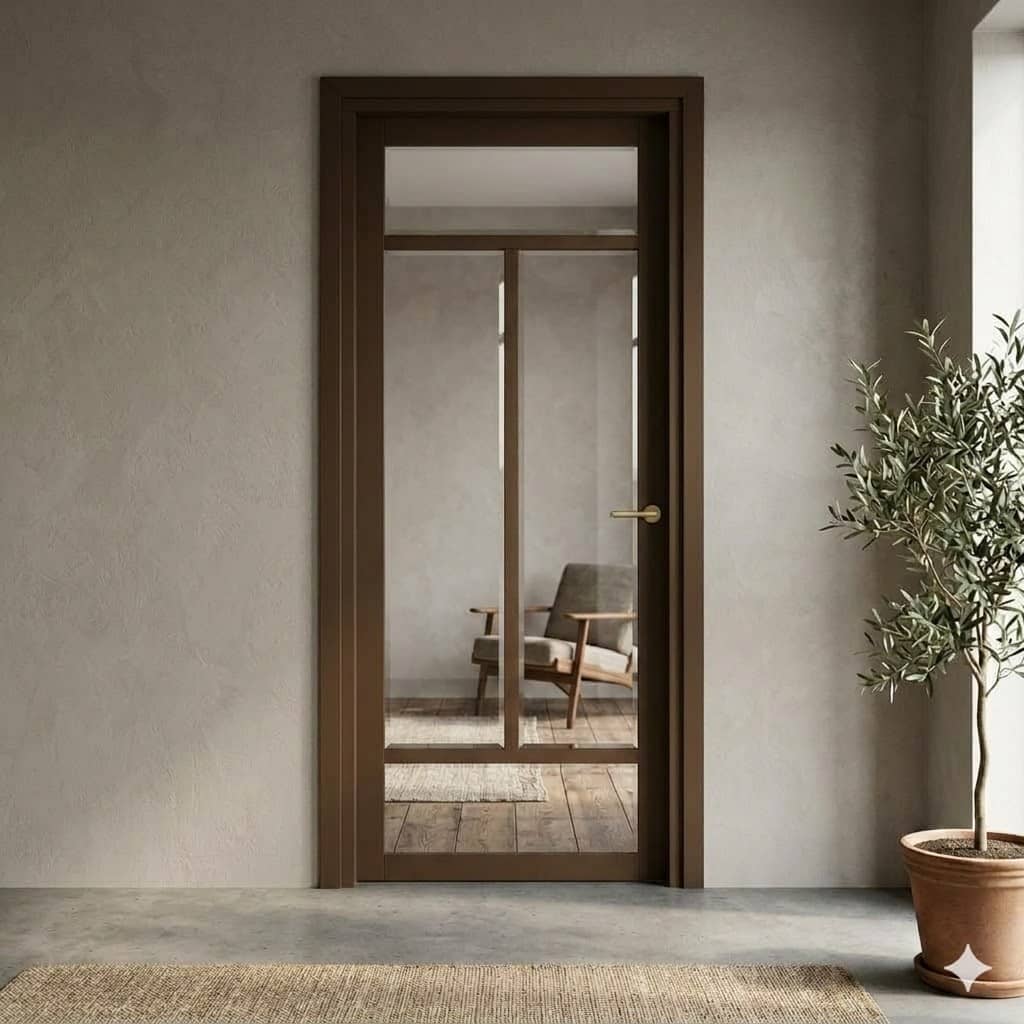 De Weekamp WK6343 is een binnendeur die de perfecte balans vindt tussen modern minimalisme en organische warmte. Door het subtiele verticale lijnenspel en de diepe, bruine afwerking creëer je direct de populaire Japandi sfeer in huis.
