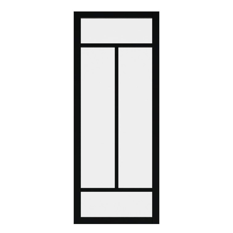 Met een stijlbreedte van 80 mm en een dikte van 38 mm combineert deze deur stevigheid met een slank design. Leverbaar met gehard blank of satijnglas en voorzien van een standaard slotgat.