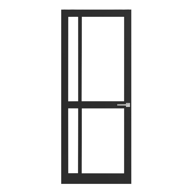 Met een stijlbreedte van 95 mm en een dikte van 38 mm combineert deze deur stevigheid met een slank design. Leverbaar met gehard blank of satijnglas en voorzien van een standaard slotgat.
