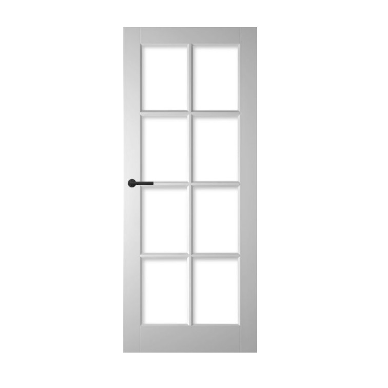 Houten binnendeur met elegante facetprofilering die moeiteloos past bij zowel moderne als klassieke interieurs. Leverbaar met blank, mat of mat gelaagd glas, eventueel met een subtiel facetgeslepen rand. Standaard wit gegrond en af te werken in elke gewenste kleur. Prijs exclusief glas, beslag en hang en sluitwerk.