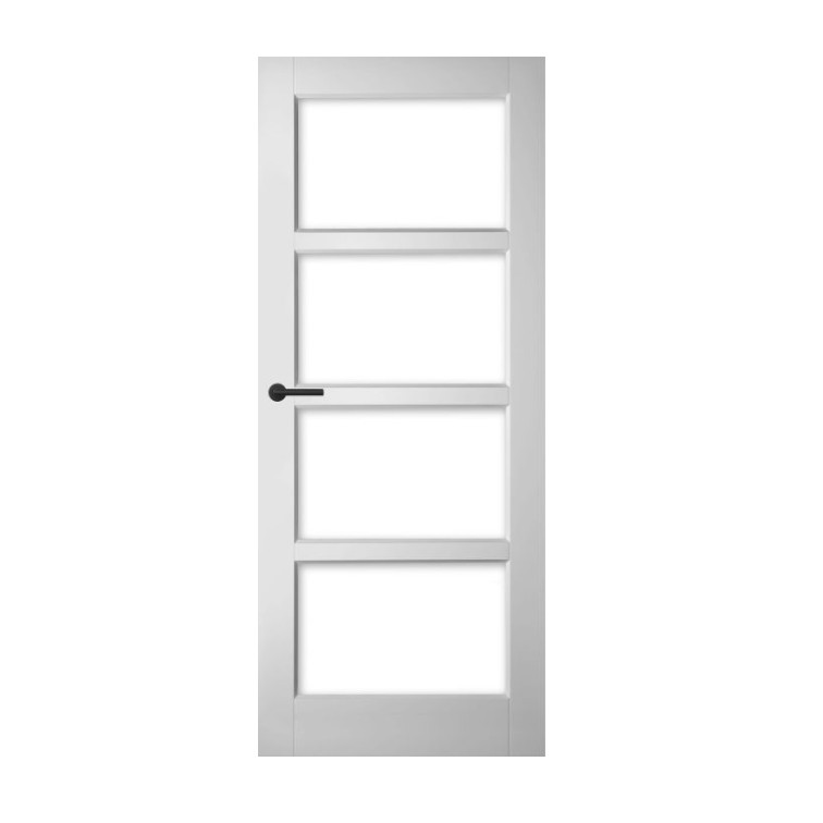 Houten binnendeur met elegante facetprofilering die moeiteloos past bij zowel moderne als klassieke interieurs. Leverbaar met blank, mat of mat gelaagd glas, eventueel met een subtiel facetgeslepen rand. Standaard wit gegrond en af te werken in elke gewenste kleur. Prijs exclusief glas, beslag en hang en sluitwerk.