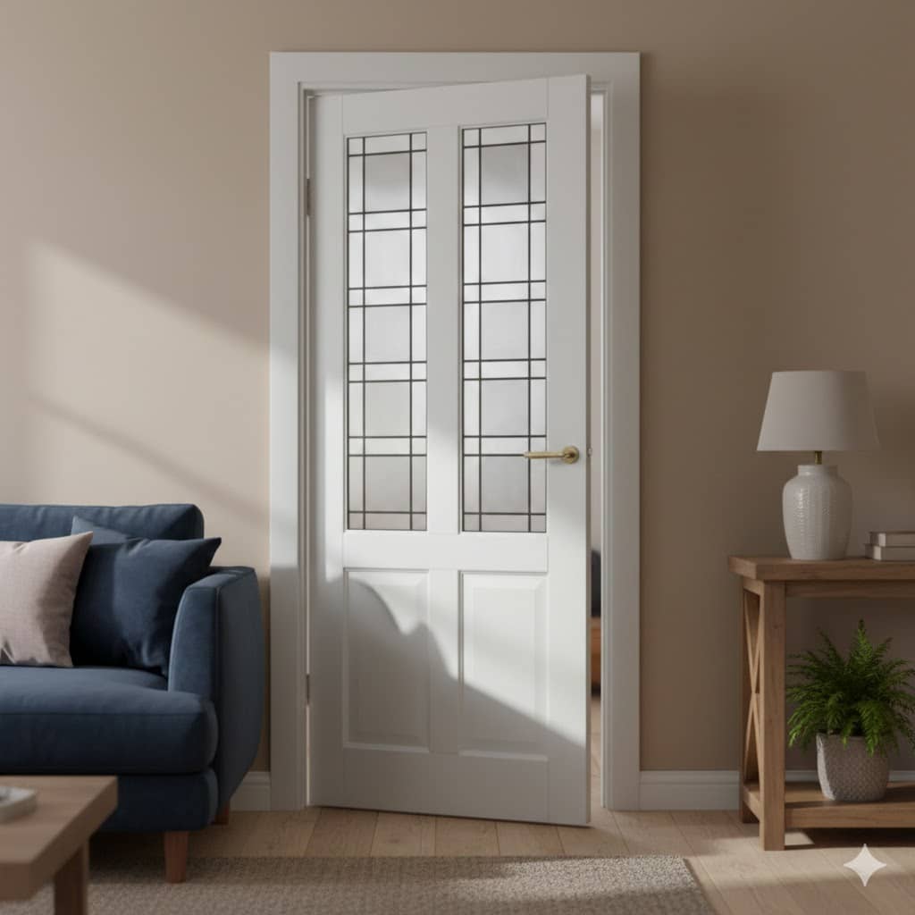 Houten binnendeur met elegante facetprofilering die moeiteloos past bij zowel moderne als klassieke interieurs. Leverbaar met blank, mat of mat gelaagd glas, eventueel met een subtiel facetgeslepen rand. Standaard wit gegrond en af te werken in elke gewenste kleur. Prijs exclusief glas, beslag en hang en sluitwerk.